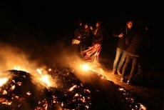 La quema de las ruedas pone punto y final a la celebración de quintos y boteros. Rodrigo, Ainhoa, Víctor, Jorge, Nerea, Valentxu y Alba se despiden de la fiesta dando el testigo a los nacidos en 1998.Todos ellos compartieron velada en discoteca Pouppes, junto a familia y amigos.