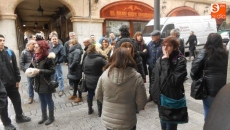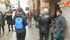 Los actos que realizaron fueron una concentración de 5 minutos ante las sedes de CCOO y UGT, y a las 12.30 horas una reunión con el Subdelegado de Gobierno de Salamanca, al que le hicieron entrega de un manifiesto en apoyo de estas personas procesadas.