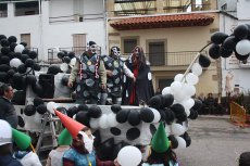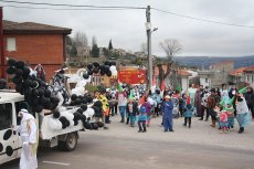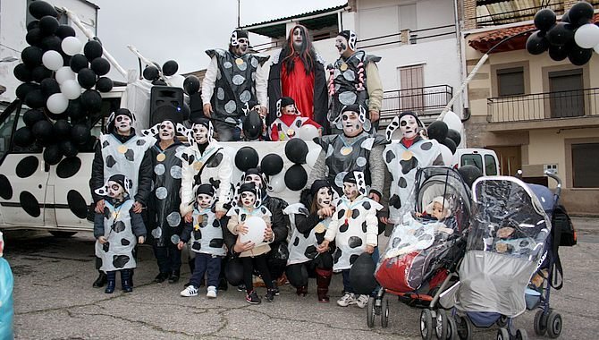 Al concurso de disfraces del domingo, en el que la imaginación y la alegría volvió a brotar en la plaza del pueblo, este lunes tenía lugar un apoteósico desfile con un protagonista de excepción, el 'camión dálmata', que animaba con música el recorrido por las calles villarinenses.