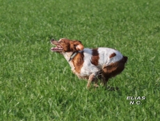 Son días en los que desayunamos hablando de perros, luego vamos al campo al concurso hablando de perros, comemos hablando de perros y cenamos hablando del mismo tema. Los perros nos vuelven locos a todos los que allí estamos, pero desde la más inmaculada locura, algunos hallamos la felicidad viendo correr a los perros sobre el verde trigo mientras, de vez en cuando, se detienen estáticos ante la presencia de una pareja de perdices, localizada mediante su extraordinario olfato, que se camuflaba entre el trigo. Así es, básicamente, el transcurrir de estos días. Me voy a ser feliz.