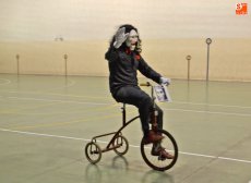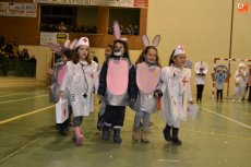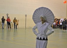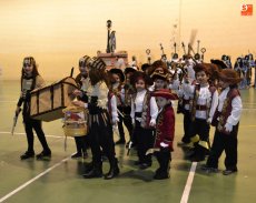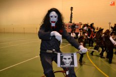 El mal tiempo obligaba finalmente a organizar la exhibición carnavalera en el pabellón municipal Miguel Ángel Jiménez Barcala, que se quedaba pequeño para albergar a la gran cantidad de vecinos que no quisieron perderse el acto central de las fiestas. La dulzaina alborada fue la encargada de poner la banda sonora a cada una de las 24 creaciones que este año se presentaron a concurso, lo que supone un importante aumento en el número de participantes con respecto a años anteriores.