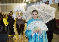 La pista de tenis cubierta de Carbajosa de la Sagrada fue escenario en la tarde del martes de una gran fiesta de Carnaval en la que participaron vecinos de todas las edades para exhibir sus mejores y más originales disfraces y bailar en una jornada marcada por el buen ambiente.