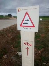 La Diputación de Salamanca, a través de su delegación de turismo y patrimonio, está procediendo durante esta semana a la colocación de señales complementarias en los hitos de señalización de la Ruta teresiana De la cuna al sepulcro, con el fin de mejorar la seguridad de los peregrinos que realizan dicha ruta cuando hay que cruzar carreteras. Las señales incorporadas avisan a los peregrinos del peligro por el tráfico de vehículos en dichos puntos tanto en dirección a Alba de Tormes como a Ávila, principalmente en los entornos del camino con la confluencia de la carretera SA-114 de Alba de Tormes a Peñaranda.