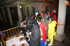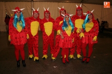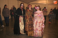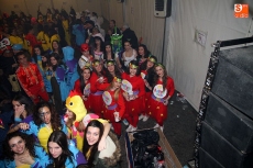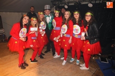 En torno a medianoche comenzó la verbena y se abrió la inscripción de participantes en el tradicional concurso de carnaval. Unas 150 personas en total, divididas en 11 grupos y 8 parejas y concursantes individuales se inscribieron en la carpa municipal. Entre los disfraces de los participantes se pudieron ver desde simpáticas Pikachu a cervatillos, pasando por marcianos, pollos y mafiosos. El jurado, encabezado por el concejal de Festejos, Samuel Rodríguez, entregó los premios sobre las tres y media de la madrugada. Para comenzar, se sorteó un jamón ibérico entre todos los participantes, quienes habían recibido un ticket cada uno.