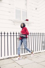 Con unos jeans en lavado claro, dejando el tobillo al descubierto, un jersey básico con cuello cisne y un abrigo masculino de líneas rectas, será la opción perfecta para lucir las zapatillas del momento. Además, es un look fácil de llevar para un plan de viernes tipo afterwork o un sábado de turisteo por el centro de la ciudad.