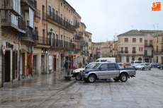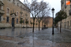 Finalizada la retirada de todos los elementos, se dio un lavado con agua a la Plaza, que se unió a la lluvia que está cayendo durante la jornada del viernes en Ciudad Rodrigo. El paso final para recuperar la total normalidad en el ágora mirobrigense será la devolución de los cañones habitualmente situados a los pies de la Casa Consistorial.
