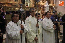 El Vía Crucis de la Junta de Cofradías se ha celebrado este sábado en la parroquia de San Pedro Apóstol de Tejares. El acto incluía la lectura de las estaciones dentro del templo y en las calles aledañas, con la presencia del obispo, Carlos López.