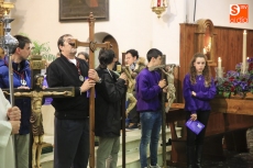 Las diferentes hermandades que forman parte de la Junta de Cofradías y grupos de la parroquia de este barrio han participado en la lectura de las estaciones, junto a la imagen de un Crucificado de este templo.