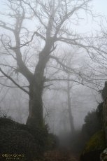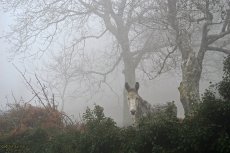 Parecería, en estas imágenes de la niebla, que los árboles extienden esos cabellos tan hermosos y delicados de sus ramas por un espacio acogedor y lechoso, entregado al misterio. Y que el burro blanco mirara desde su inocencia esa melodía de silencio que la niebla derrama. "Siempre buscando a Dios entre la niebla", indicaba Antonio Machado. Y esas palabras vienen como anillo al dedo de estas imágenes, que nos ponen frente al misterio de lo sagrado.