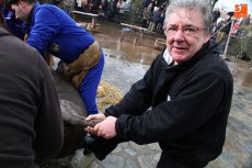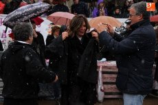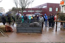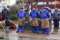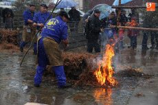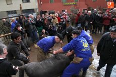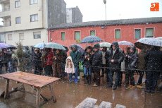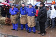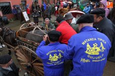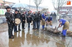 Al igual que los arrieros tenían que luchar contra los elementos hace décadas, los presentes en la jornada matancera de hoy tuvieron que luchar contra el fuerte temporal en Guijuelo. La lluvia, el viento y más tarde la nieve, no impidieron la celebración del sacrificio, que contó con menos público, pero mucho más fiel que en las anteriores jornadas.