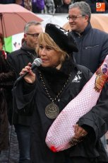 La primera en recibir la camisa matancera fue Helena Bianco. La artista, conocida por canciones como 'El puente' de su grupo Los Mismos, agradeció su presencia en la matanza: "Estoy muy contenta de que me hayan invitado a esta bonita fiesta. Es una maravilla el mantener una tradición como esta pese al paso del tiempo y las inclemencias que sufrimos hoy. Es una lástima que no haya tenido tiempo para haceros una canción a la gente de Guijuelo".