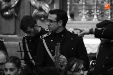 Pocas veces puede encontrarse uno en lugares en los que el arte se puede ver y escuchar a la vez. San Esteban es uno de esos lugares. Un lugar único en el que este domingo ha tenido lugar el II Pregón Musical de la Semana Santa, lo que ha convertido el templo de Los Dominicos, además del habitual regalo para los [Img #563116]ojos, en un deleite para los oídos. La Estrella, el Yacente, Ciudad del Tormes y La Piedad (de Valladolid), las cuatro bandas que desfilarán en la madrugada de los sueños, han puesto sus notas al servicio de la palabra de Tito Aparicio, pregonero y hombre nacido y criado entre corcheas. De esta manera, San Esteban anunció la llegada de la Semana Santa y de su música, uno de sus elementos más importantes, y, quizás, el menos valorado. Para los miembros de las bandas y agrupaciones la música es su vida, y sin sus vidas la Semana Santa no sería lo mismo (o no sería).