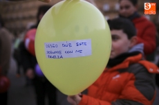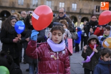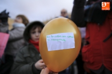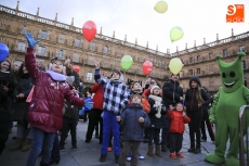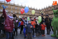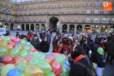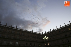 La Plaza Mayor de Salamanca acogió este lunes una lectura de un manifiesto y la suelta de globos organizada por Pyfano con motivo del Día Internacional del Niño con Cáncer 2016. El lema y el manifiesto resumen que hay 8 razones para la esperanza.