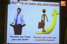 El Aula de Grados de la Universidad Pontificia ha acogido esta tarde la conferencia del consultor Fernando Sánchez Salinero 'Un mundo de oportunidades. Entenderlo y saber afrontarlo es jugar con ventaja'.