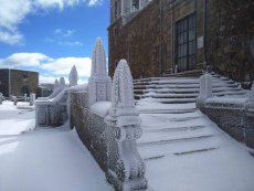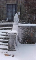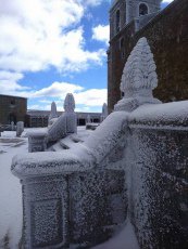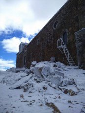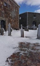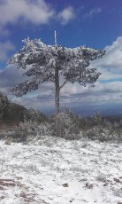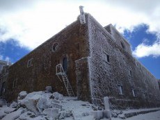 El hielo y el deshielo se fusionan en el carámbano y los 'chupiteles' se desprenden de la 'montaña dorada'. La Peña de Francia amanecía ayer vestida de blanco, con un nuevo traje del que surgen los contrastes de la piedra milenaria. El blancor irradiado por el Sol coronaba su cumbre anunciando el silencio de la vida, mientras los murmullos del viento se hacían ecos entre cruces y escalinatas, entre las torres de una Sierra que con sabiduría mira atrás en el tiempo.