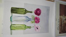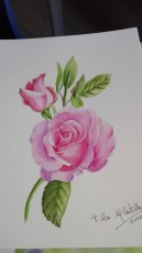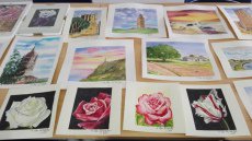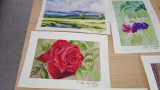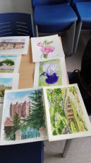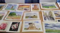La profesora del curso de pintura que se está realizando en Villoria, Francisca González Del Castillo, ha sorprendido hoy a sus alumnas mostrando sus últimos trabajos realizados en acuarela.