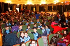 La Universidad Pontificia de Salamanca y la Fundación Salamanca Ciudad de Cultura y Saberes han organizado el espectáculo 'Viaje al centro de la radio' que este viernes, se representaba en el Teatro Liceo. Esta iniciativa, dirigida a escolares salmantinos de edades comprendidas entre los 10 y 18 años, pretendía acercar el mundo de la radio a los más jóvenes, así como divulgar las posibilidades de este medio para la formación y el desarrollo de los más pequeños.