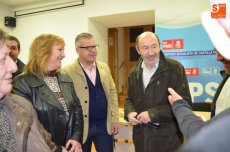 Antes del comienzo del acto oficial, al que han acudido numerosos alcaldes de la comarca, afiliados y simpatizantes, además del equipo municipal, encabezado por José Luis Rodríguez Celador y Fernando Pablos, como representante provincial, Rubalcaba ha manifestado que su partido debe ser ejemplar, palabras que ha repetido en numerosas ocasiones en sus intervenciones posteriores. También ha asegurado que el Partido Socialista quiere el poder para poder cambiar las cosas, no para servirse de él, añadiendo que a lo largo de su historia se han cambiado las políticas pero no los principios de igualdad, libertad y justicia.