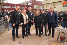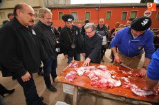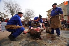 Tras la nevada del pasado sábado durante el sacrificio, la matanza regresó al domingo con unos invitados muy televisivos. La periodista María Jesús Gallardo, una de las habituales de la fiesta chacinera, se encargó de presentar el evento junto al organizador Jesús Merino. Junto a ellos se situó el concejal Roberto Martín, que fue el representante municipal en esta ocasión. El realizador Hugo Stuven ocupó a su vez el cargo de Mondonguero Mayor.