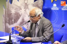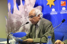 Luis Andrés Marcos, doctor en Filosofía y Letras, ha impartido este jueves en la Sala de la Palabra del Teatro Liceo la conferencia titulada 'Miguel de Unamuno, aislamiento en Fuerteventura', en un encuentro organizado por la Asociación de Amigos de Unamuno.