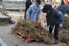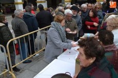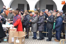 Como cierre de la mañana, se procedió al sorteo de dos lotes compuestos por un jamón y un lomo cada uno, pertenecientes al cebón al que se había dado muerte a primera hora. Esos lotes recayeron en los números 1.027 y 1.568. Coincidiendo con este sorteo, llegaron a caer algunos copos de nieve en la Plazuela del Buen Alcalde, que no fueron a más.