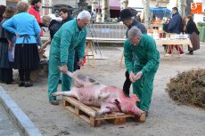 CIUDAD RODRIGO | La tradicional matanza de un cebón se complementó con baile charro, un cuentacuentos y teatro de calle