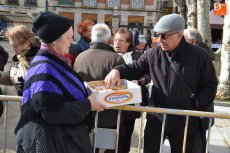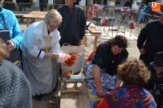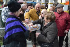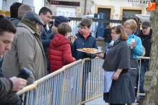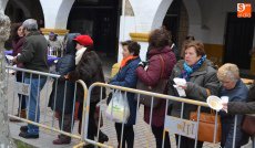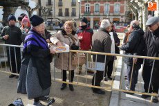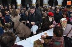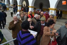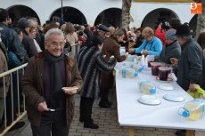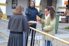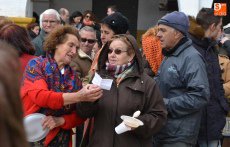 [Img #571330]Aunque el sol fue apareciendo y desapareciendo, hubo poco público en el tramo inicial de la mañana, en el cual se repartieron perronillas, mantecados y aguardiente. Estos productos se agotaron cuando llegó -ya con la mañana avanzada- un numerosísimo grupo de turistas.