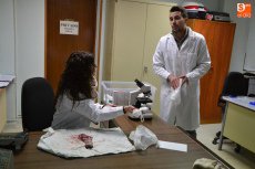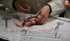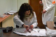 Dentro de este proceso, dos veterinarios se llevaron a analizar la lengua del cebón para comprobar que el animal estaba sano.