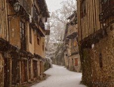 Blanca y llena del silencio más hermoso es la 'Mirada' de SALAMANCArtv AL DÍA, una entrañable fotografía de Rosa Gómez con la nevada calle Prados donde vive en La Alberca como telón de fondo.