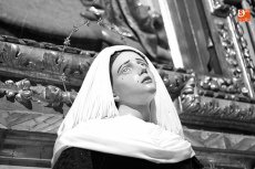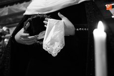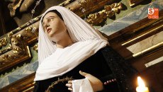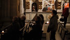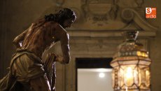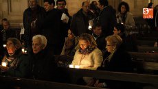 Un nutrido grupo de fieles han alumbrado con sus velas el caminar sobre los hombros de sus hermanos de carga del hombre azotado por las distintas estaciones de su Pasión y muerte, en un paseo por la intimidad del claustro de la Universidad Pontificia.