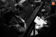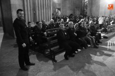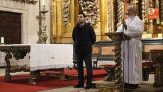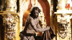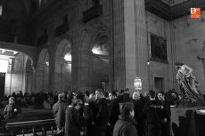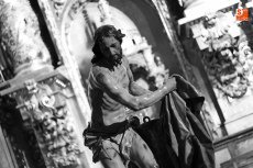 Tenue luz y olor a incienso en una Clerecía llena de fervor. La Hermandad de Nuestro Padre Jesús Flagelado ha celebrado hoy el Vía Crucis de su imagen titular en su sede canónica, la iglesia del Espíritu Santo (Clerecía).