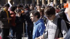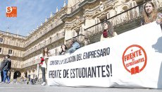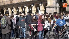 Los estudiantes, convocados por el Frente de Estudiantes, han salido este jueves a la calle en Salamanca en protesta por los recortes, la Ley Orgánica para la Mejora de la Calidad educativa (LOMCE), el 'decreto 3+2' que reduce la duración del grado universitario y amplía un año el máster y las prácticas no remuneradas obligatorias en FP y en la Universidad. En esta jornada de protesta, los estudiantes también han recordado que es fundamental defender la educación pública, gratuita, laica y de calidad. Según datos de la Junta de Castilla y León, un total de 4.071 alumnos (un 2,72 % del total) ha secundado la huelga convocada para esta jornada en Castilla y León. Por otra parte, 7.263 estudiantes (un 2,40 % del total) no han asistido a clase.