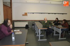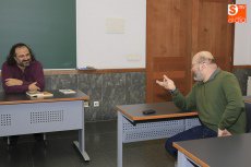 El poeta Alfredo Pérez Alencart ha impartido hoy, en el edificio Juan del Enzina, la sesión de "Encuentros cercanos. Ciclo de conversaciones del Máster de Creación Literaria'.