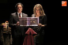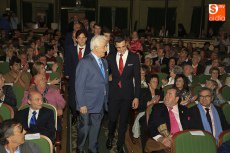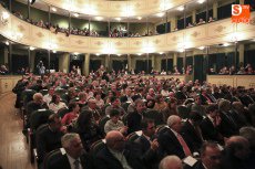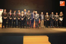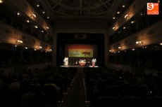El Teatro Liceo de Salamanca se ha vuelto a vestir de gala para acoger la entrega de los trofeos y distinciones a los triunfadores de la pasada Feria de la Virgen de la Vega. Bajo el lema 'Defendamos lo nuestro. Salamanca es taurina', la Federación de Peñas 'Helmántica' ha celebrado con un nuevo éxito su tradicional gala cultural en la que el matador de toros Juan del Álamo ha sido el gran protagonista al recibir cuatro de los premios y que ha dejado momentos de emoción como la gran ovación que todos los asistentes han tributado al cirujano Luis Ortega, "el ángel de la guarda de La Glorieta".