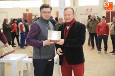 Grimaldi, propiedad de Alberto Martín Gallego, y Gemela, de Ángel Santiago García, se han alzado con el premio de Gran Campeón Macho y Hembra, respectivamente, en el concurso de terneros de Charolés celebrado este sábado por la asociación Unión de Criadores de ganado vacuno selecto de raza charolesa de España, UCHAE, con motivo de la Feria de Ganado Vacuno Selecto en el Recinto Ferial de la Diputación de Salamanca. El concurso, tal y como señalan desde UCHAE, ha sido todo un éxito y las ventas en lo que va de feria muy abundantes. El diputado de Agricultura, Román Hernández, ha entregado este domingo los trofeos.