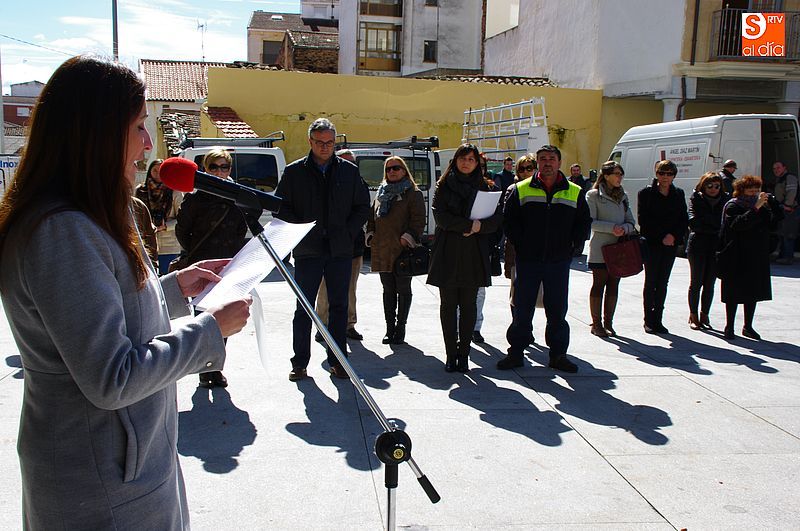 La plaza Mayor de la villa sirvió hoy de escenario para el homenaje que el Ayuntamiento de Guijuelo realizó para conmemorar el Día Internacional de la Mujer. La concejal, Mayte Montero, leyó el tradicional manifiesto, acto que fue presenciado por más de medio centenar de personas. Entre los asistentes se encontraban el alcalde, Julián Ramos, varios concejales del equipo de gobierno, la Asociación de Mujeres Emprendedoras de Guijuelo y otros vecinos. Al finalizar el acto, desde la Concejalía se ha procedido al reparto de unos marca-páginas conmemorativos en los que se podían leer mensajes en positivo como 'Si tienes que tomar una decisión, toma la que te haga feliz'.