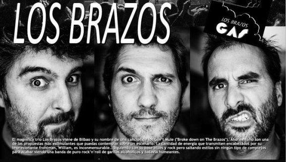 El viernes 11 de marzo, las 12 de la noche, el café-blues La Alquitara abre sus puertas, con entrada gratuita, al concierto de Los Brazos, un potente trío que emerge de los alrededores de Bilbao con la fuerza de quienes se han dedicado a la música rock desde su adolescencia.