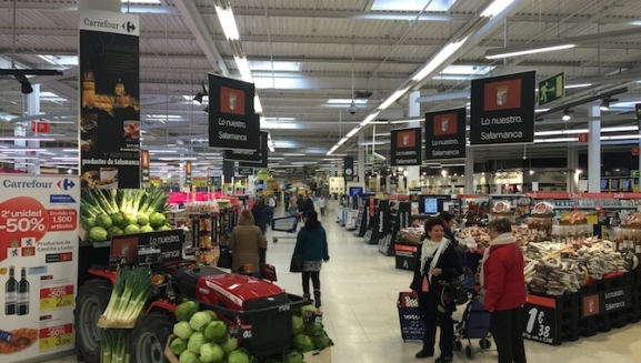 Carrefour reafirma un año más su compromiso por los productos locales con la puesta en marcha de los "Productos de Salamanca" que se desarrolla del 11 al 28 de marzo, en el hipermercado ubicado en la avenida Agustinos Recoletos. La cadena, que considera a las empresas locales como parte del patrimonio agroeconómico castellano leonés, ha colaborado en 2015 con 559 empresas de Castilla y León.