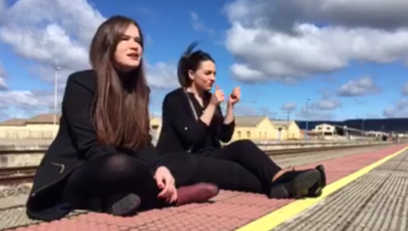 María García, estudiante de Historia y Ciencias de la Música en la Universidad de Salamanca; y Sandra Corvo, logopeda de profesión y trabajadora en una clínica de Plasencia, han interpretado la canción en el andén de la estación de tren de Ciudad Rodrigo, la primera de ellas con la voz, y la segunda con lenguaje de signos.