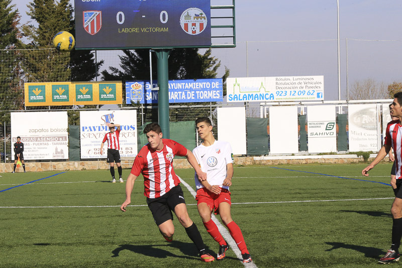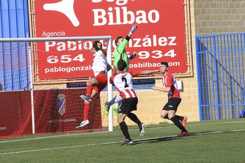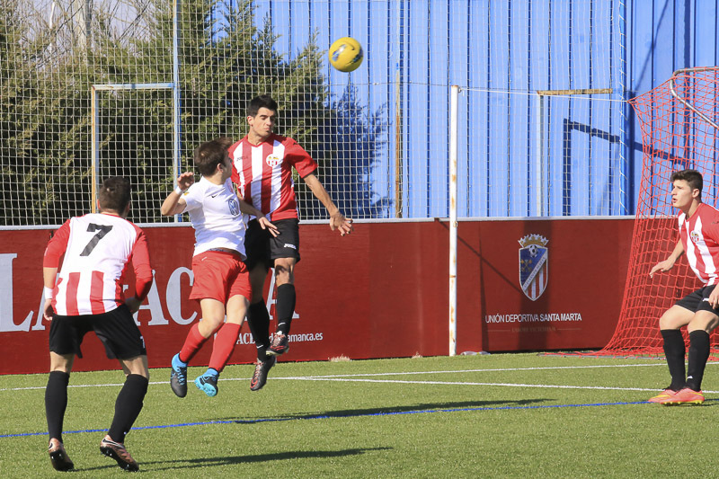 El duelo entre el Santa Marta y el Pizarrales se saldó con triunfo local por dos tantos a uno. Los rojiblancos lograron abrir la lata en el minuto 54 por mediación de Adrián. Cuando restaban diez minutos llegó la igualada del 'Piza' con un tanto de Luis. Al final, a falta de cuatro minutos, Raúl González materializó el defenitivo 2-1.