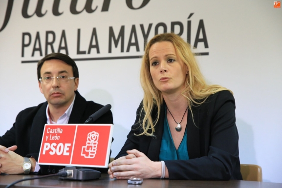 Cantera, acompañada por el secretario general del PSOE en Salamanca, Fernando Pablos, también tuvo un recuerdo para las víctimas del atentado del 11-M en Madrid.