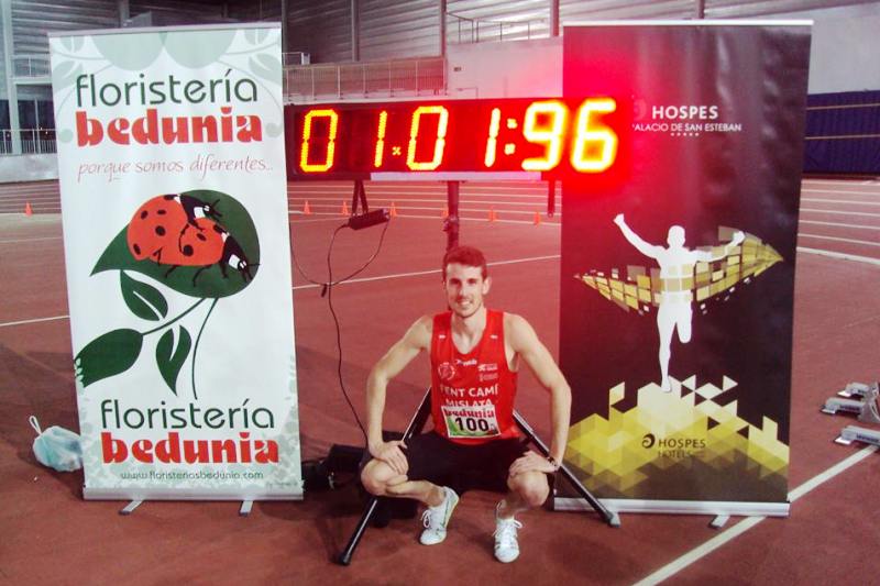 El atleta salmantino deja la nueva plusmarca en 1.01.96 y supera los 1.02.00 que tenía Antonio Manuel Reina desde el año 2009