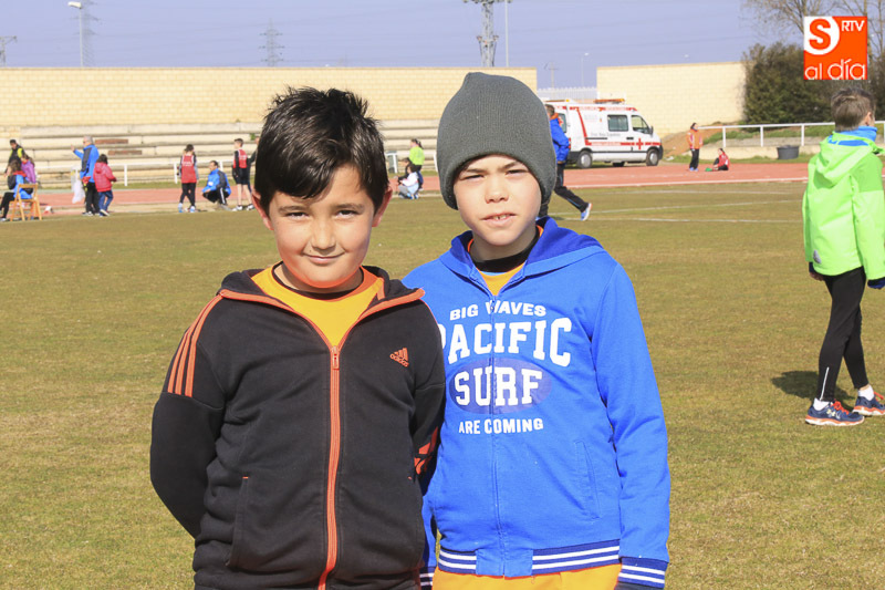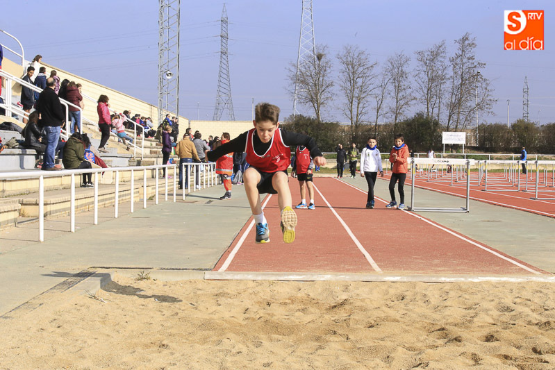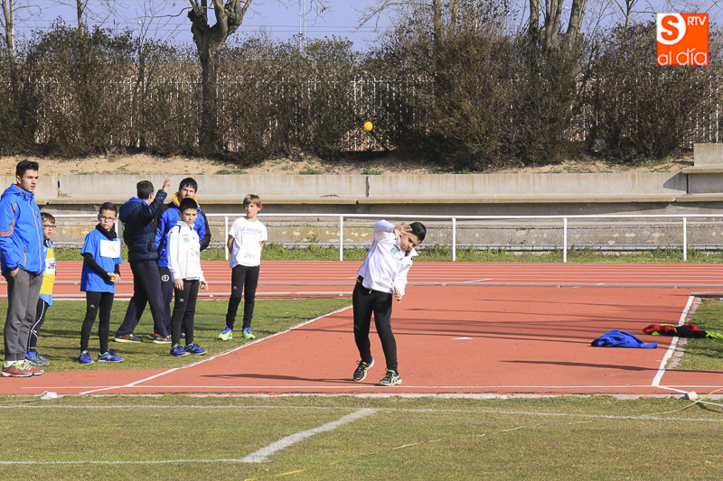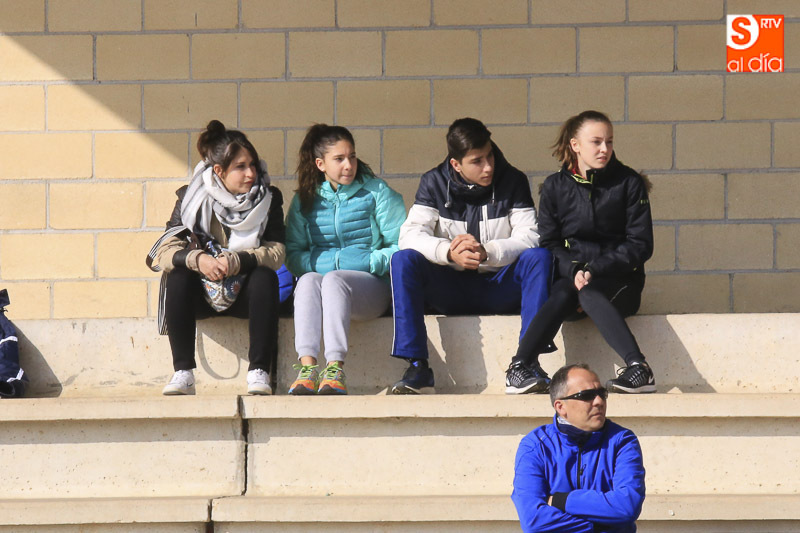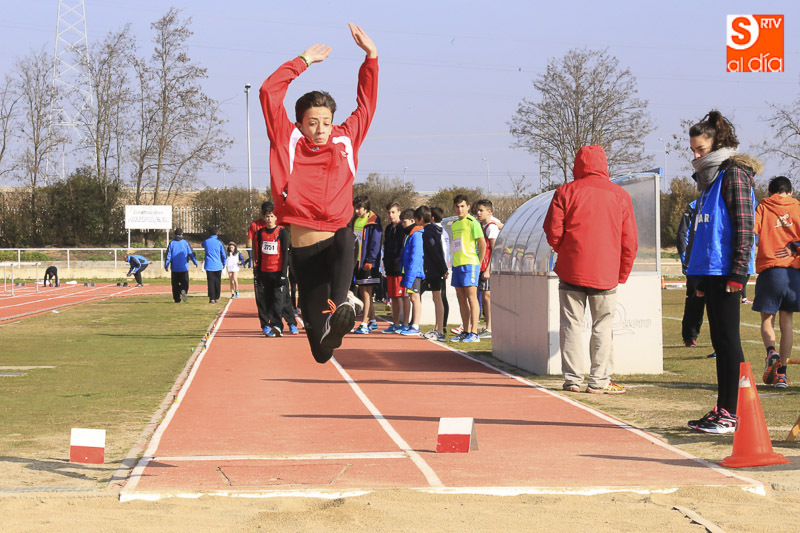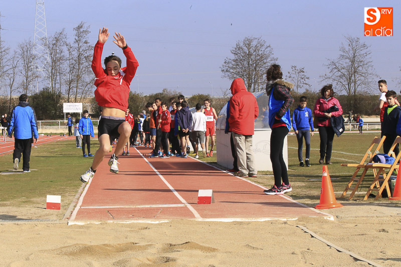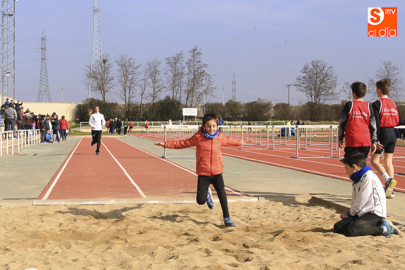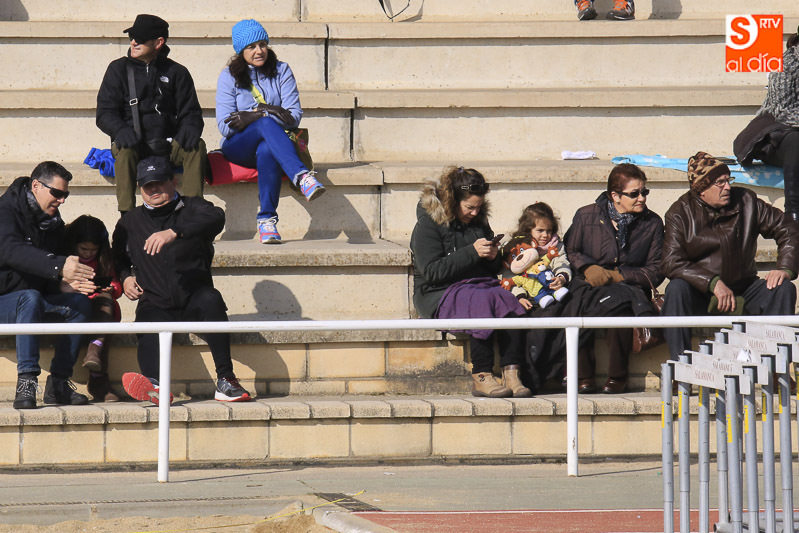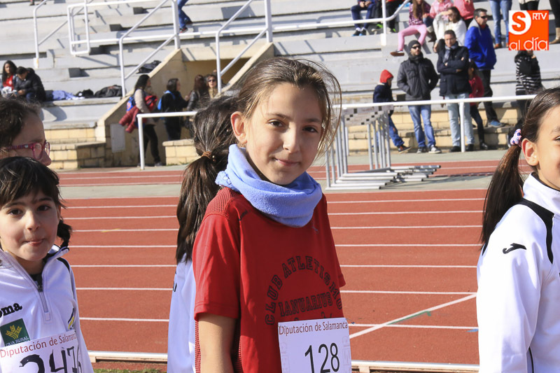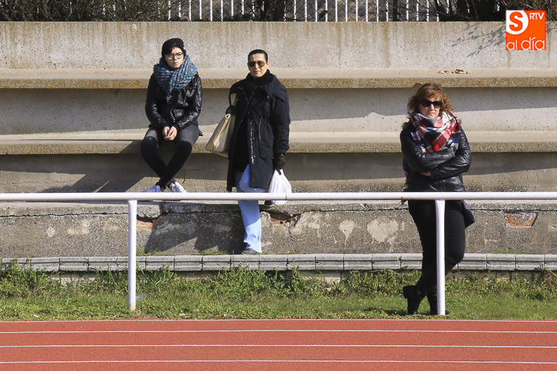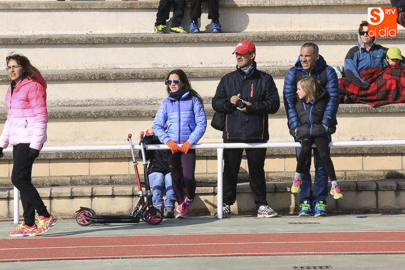 La soleada pero fría y ventosa mañana atlética en las pistas de atletismo de Salamanca (Helmántico) ha contado con una participación de 669 escolares (433 alevines y 236 cadetes) y numerosa presencia de espectadores y animadores en las gradas.
