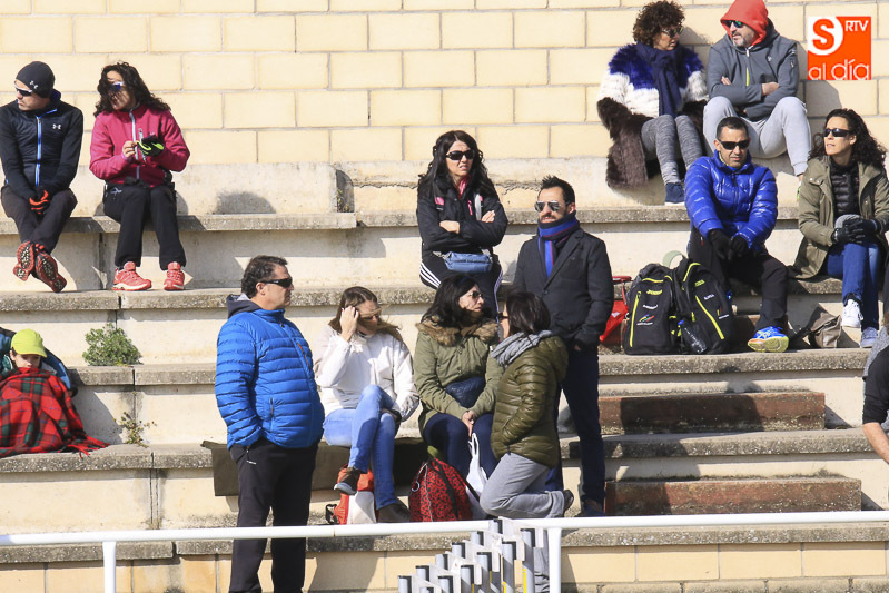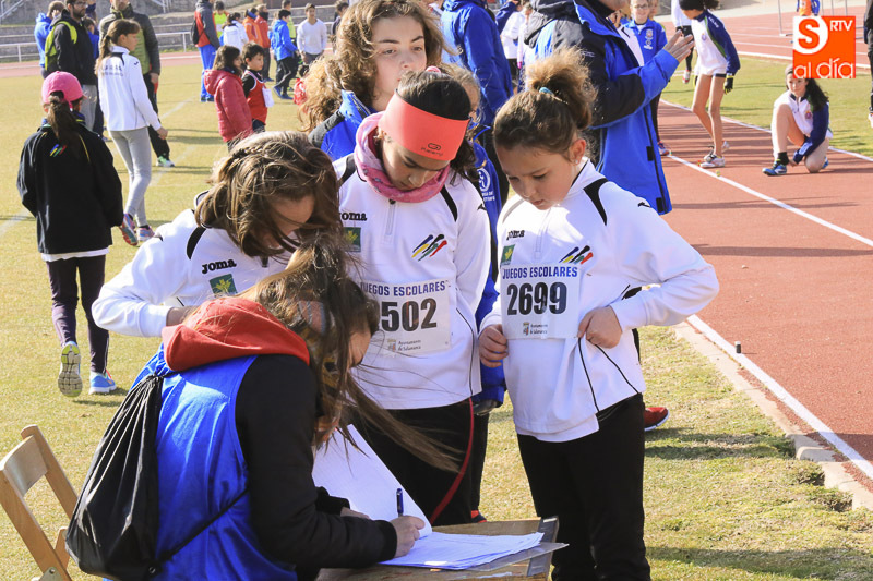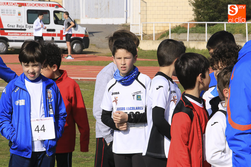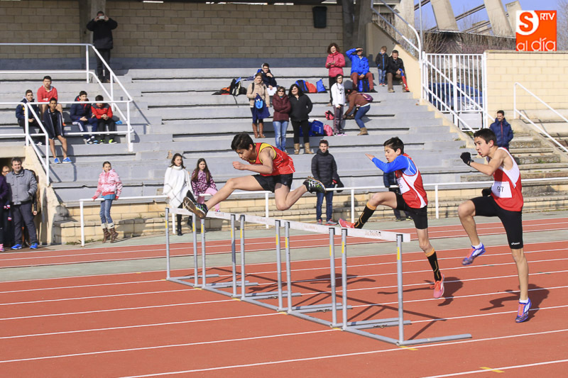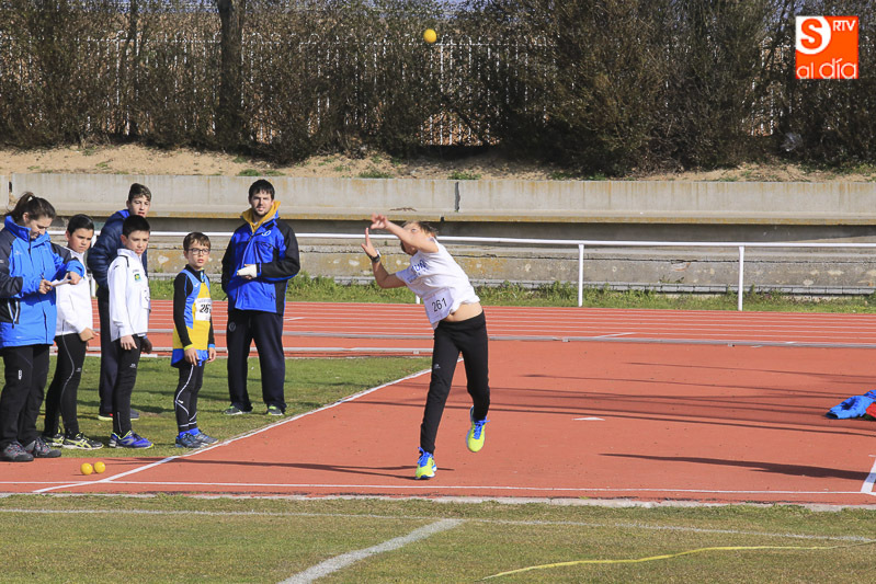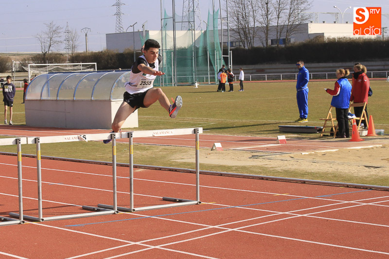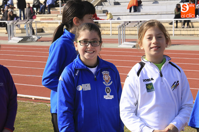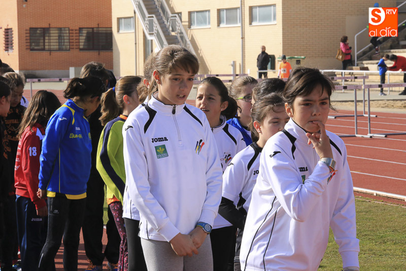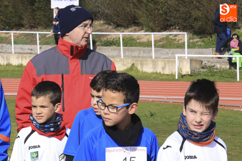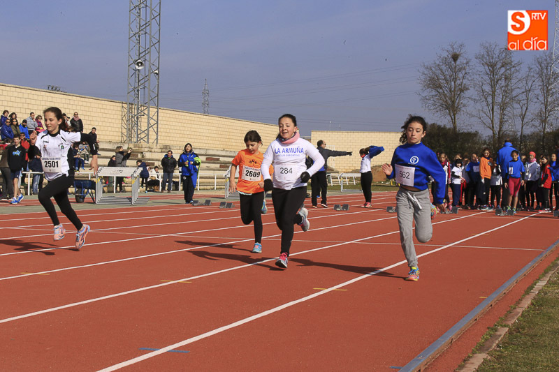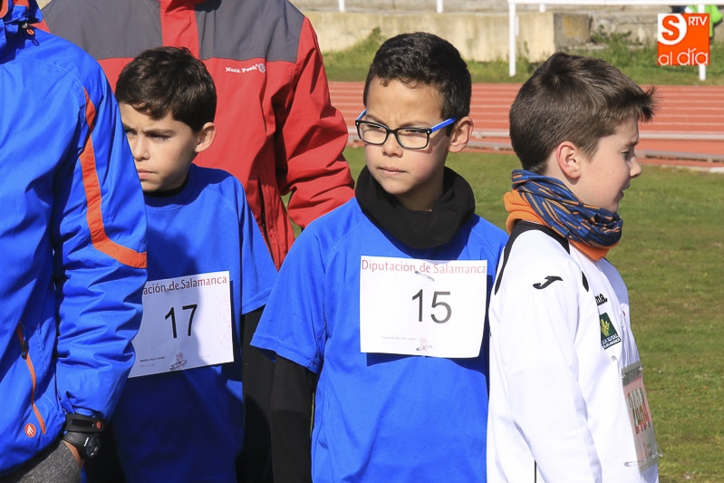 La soleada pero fría y ventosa mañana atlética en las pistas de atletismo de Salamanca (Helmántico) ha contado con una participación de 669 escolares (433 alevines y 236 cadetes) y numerosa presencia de espectadores y animadores en las gradas.