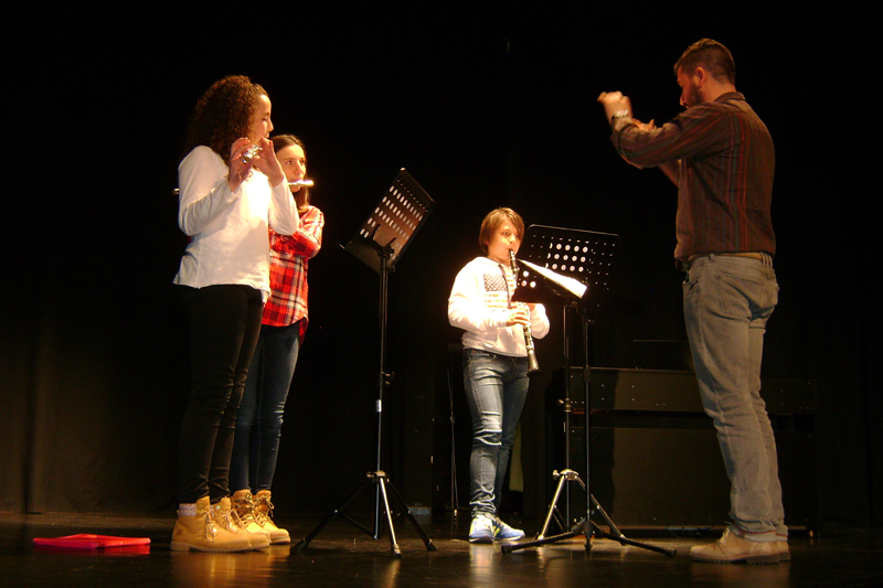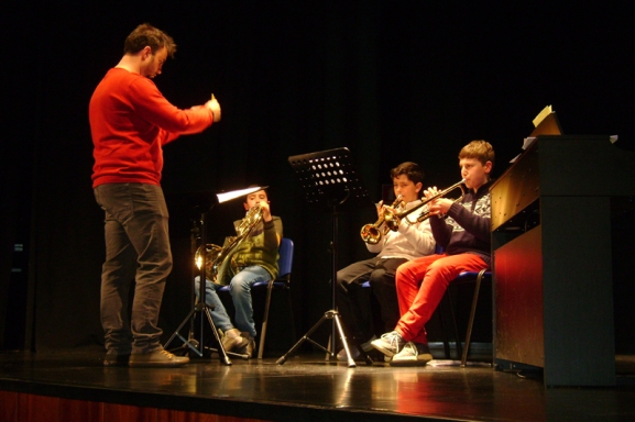 Los alumnos de Javier Rivera fueron los siguientes en subir al escenario. Primero el trompista Daniel Revilla, seguido de Carlos Javier Tejedor y Francisco González con la trompeta. Juntos ofrecieron una actuación colectiva al final.