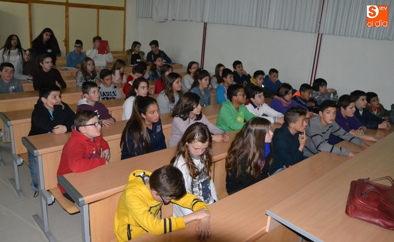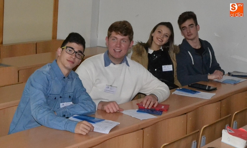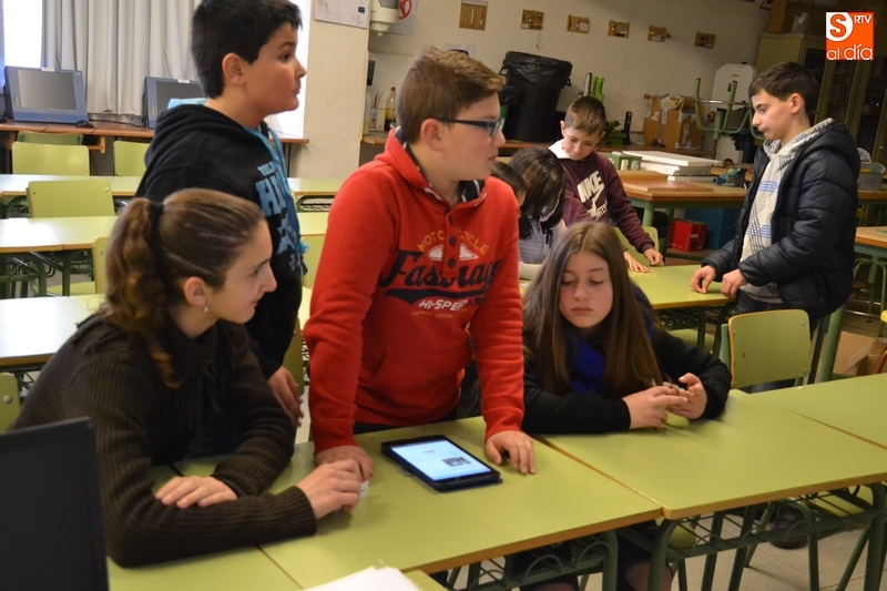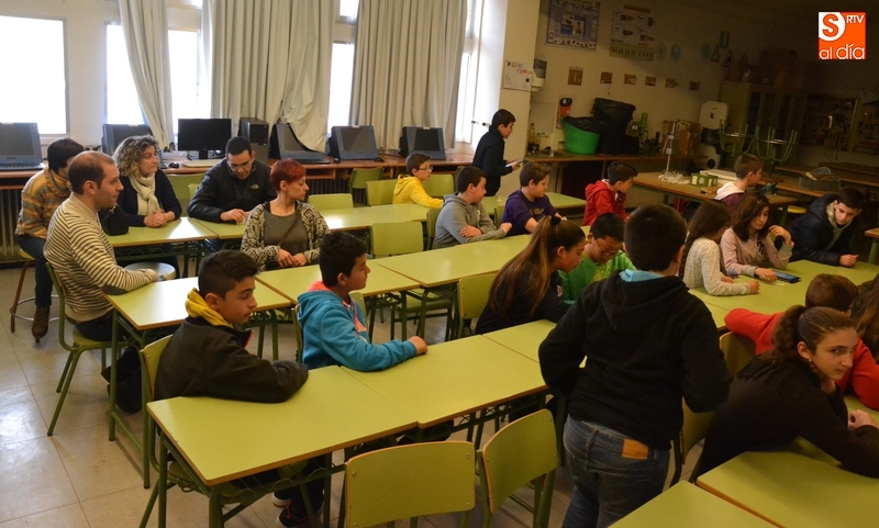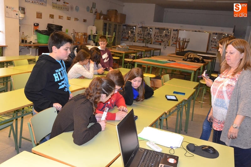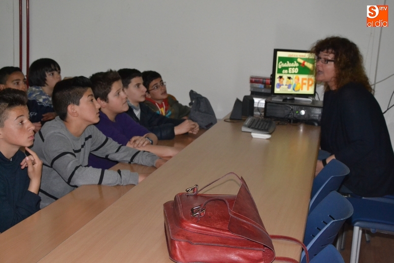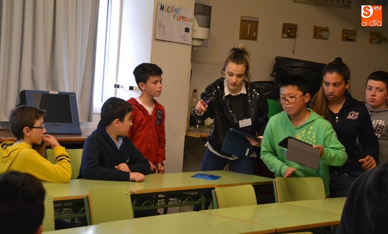 Concluida esa visita, se desplazaron al IES Tierra de Ciudad Rodrigo, donde la charla de bienvenida corrió a cargo de la jefa de estudios del Centro, Pepa Sierra. Tras esa sesión, los alumnos fueron repartidos por grupos para hacer una visita guiada por el centro que tenía como complemento una competición: los alumnos debían responder una serie de preguntas sobre la visita a través de unas tablets.