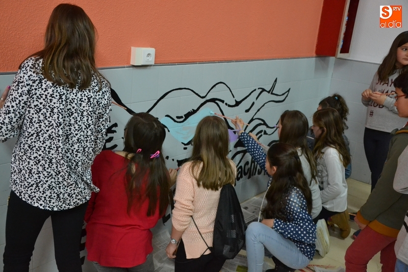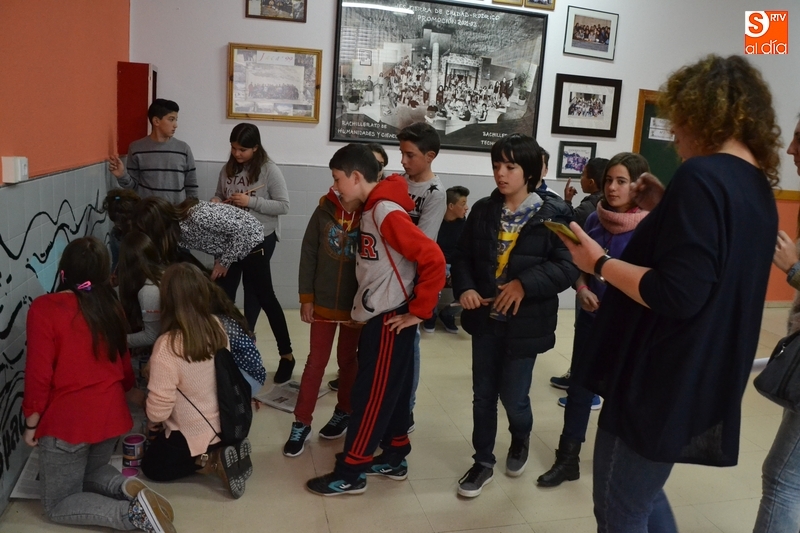 Como actividades especiales, los alumnos estuvieron pintando el mural donde se recoge que el IES es un 'Espacio Libre de Machismo', y vieron una exhibición de robots en el hall del centro.