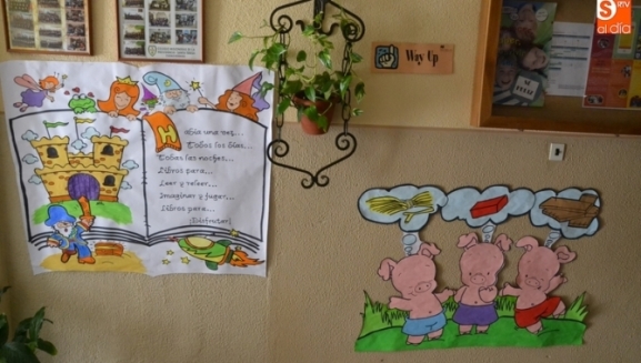 Pese ese retraso, el Colegio ya está preparándose para esos días especiales, que este año estarán dedicados al universo de los libros. Así, por las paredes del edificio de la Avenida Conde de Foxá lucen grandes dibujos relativos a libros muy conocidos para los niños, como El Quijote, Caperucita Roja o Los Tres Cerditos. Asimismo, se han colocado motivos especiales en las puertas de las clases de libros que están leyendo los alumnos.