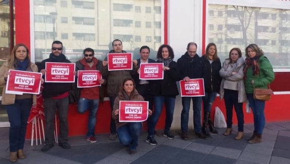 Los trabajadores de La 8 de Castilla y León Televisión en Salamanca (Radio Televisión Castilla y León) han protagonizado este miércoles un parón de 10 minutos a las puertas de su centro de producción, en la avenida Federico Anaya.