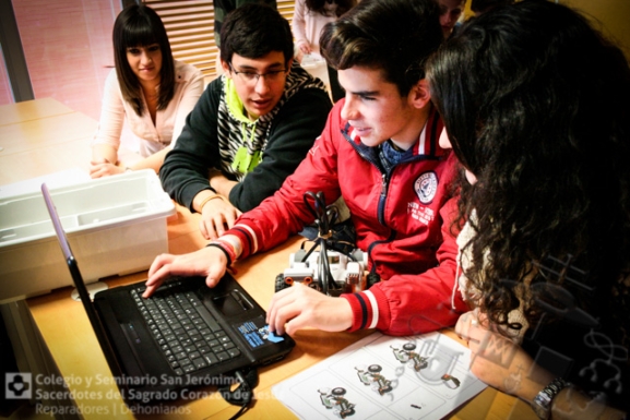 Ya en Peñaranda han podido visitar el CITA para realizar varios talleres muy interesantes, todos relacionados con la tecnología. Los más pequeños han experimentado con microscopios USB las maravillas de lo que no se ve a simple vista. Y todo ello, en inglés. Los cursos de 3º y 4º de ESO se han divertido creando su propio videojuego y los mayores de bachillerato han construido su propio robot, lo han programado y hasta han realizado una competición de sumo robótico.